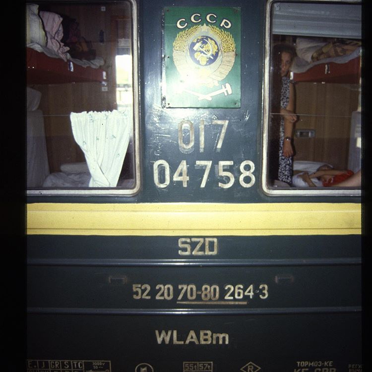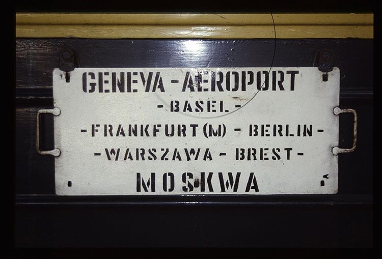 Das waren noch Zugläufe! Kurswagen von Genf - Moskau. Wohl für den diplomatischen Dienst. Aufnahme Ende 80‘er Jahre in Basel Bad. Bahnhof. Schlafwagen der damaligen SZD (Soviet Union/Russland).