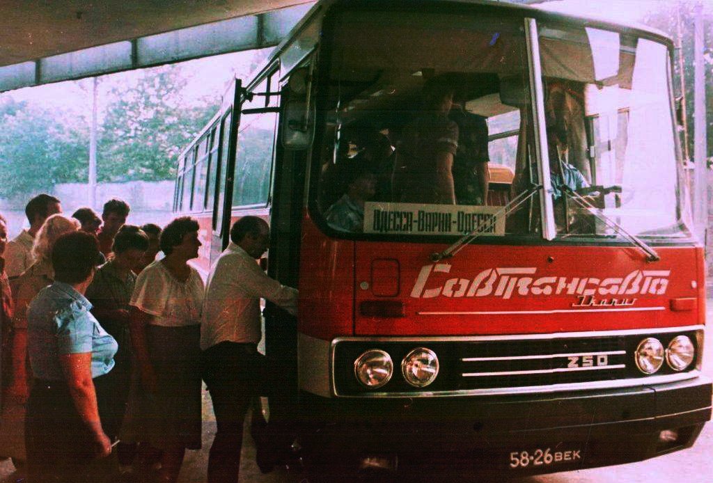 https://www.facebook.com/permalink.php? ... 2577620847Ikarus 250 v službách Sovtransavta na diaľkovej linke, ktorá spájala dve prímorské mestá > ODESSA (dnešná Ukraina) a VARNA (Bulharsko). Pri nástupe v Odesse mali cestujúci pred sebou 650 km a často viac, ako 17 hodín jazdy. Niektorí potom ešte pokračovali do Burgasu miestnym spojom.