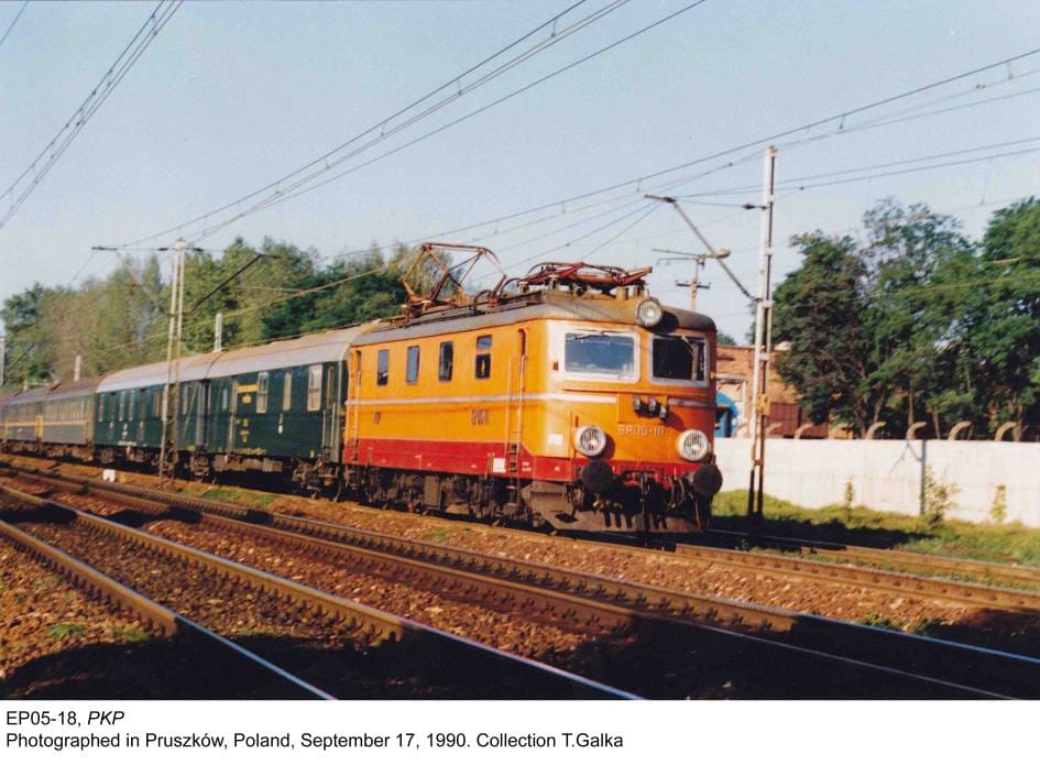 Z krawędzi peronu nawiązujemy do tego wydarzenia, przypominając zdjęcie Pana Tomasza Gałki. EP05-18 (MD Warszawa Olszynka Grochowska) z pociągiem międzynarodowym "Chopin" z Wiednia mija tereny Zakładów Naprawczych Taboru Kolejowego w Pruszkowie. 17 września 1990 r.