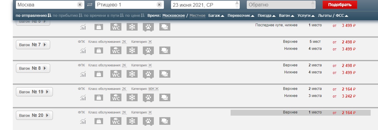 Так и есть, так и было. Временами цена между балаковскими и саратовскими группами вагонов могла отличаться процентов на 30…bogdan51:Наверное, тем, что вагоны 19-22 рассматриваются как отдельный поезд до Балаково, а остальные Москва-Саратов. Вот Динамо и чудит.Imker: Кто сможет ответить на мой вопрос: чем отличается вагон №8 от вагона №20 ?