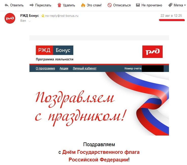 Мне не прислали (: Хотя езжу в среднем раз в месяц. И галочки на всякий спам от РЖД и РЖД-Бонус ставлю.