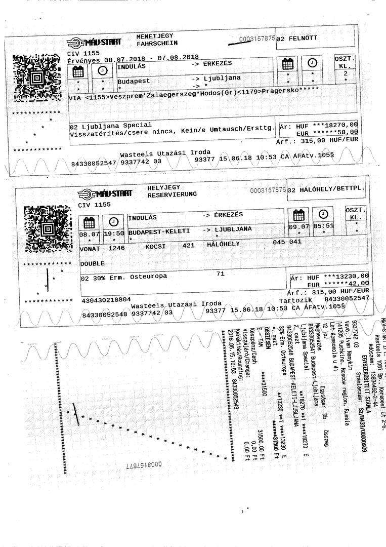 В итоге я никуда так и не поехал. Билет был не сдаваемый, а плацкарты сдали и вернули деньги за вычетом сбора за сдачу. Мне остался скан билета на память. 1 Евро=325 форинтов для продажи билетов.