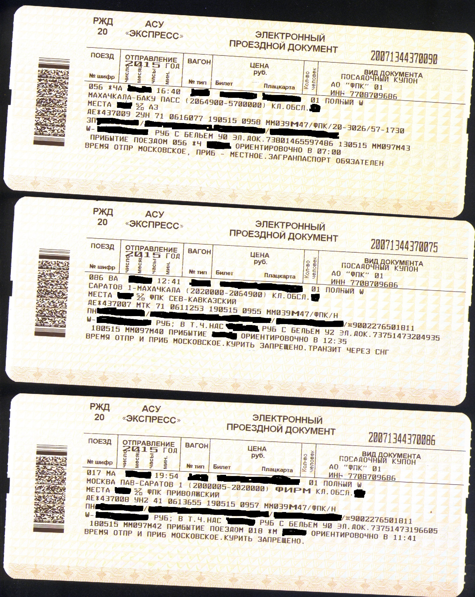 Оформлял в терминалах, причем не раз. Насколько я понял, в кассах сейчас стали выдавать на таких же бланках. Принимаются они без проблем, причем проводниками не только ФПК, но и братской БЧ (с другими перевозчиками не пробовал, есть некоторые сомнения насчет УЗ чисто по политическим причинам), так что проблем, скорее всего, в абсолютном большинстве случаев быть не должно.мегги: Сегодня покупала билеты на Казанском вокзале (именно в кассе) и мне продали билеты на новом бланке. Он в одном экземпляре и на нём написано Электронный проездной билет. Такие на сколько я знаю продаю в терминалах ТТС. Как сказала кассир, что такие билеты скоро заменят действующие, которые в 3х экземплярах. Расскажите, может кто уже ездил по таком билету. Проводники не придираются? И когда окончательно перейдут на такой вид билетов.