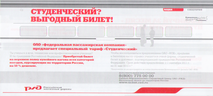 Согласен, хотя по поводу комфорта спорный вопрос. Дело в том, что РЖД само не знает, что делать с ценовой политикой. Пожалуй на всех форумах, уже миллион раз писали о слишком высоких ценах на билеты. При наших условиях, можно вообще вводить круглогодичные сумасшедшие скидки на некоторые поезда и типы вагонов. Иначе будет как на направлении Мск - Адлер в 102 или в 104 или даже в нефирменных поездах куча свободных мест в купе, потому что туда на самолёте лететь выгоднее. Им же нужно переманить паксы у авиаторов. Вот РЖД и напридумало этих скидок. Хоть какая-то прибыль будет. Хоть Красная стрела с Экспрессом заполнятся, как следует. А вообще-то РЖД сейчас очень нужны деньги, например, на засапсанивание Горьковского хода, на Тальго, на Ласточки, на путевые работы на участке Туапсе - Адлер, на строительство ж/д Адлер - Красная Поляна, на увеличение пропускной способности Адлера, на закупки новых вагонов. Пришлось канючить 400 миллиардов у гос-ва.Shadow: Предоставлять как таковую скидку в 50% за одну и ту же услугу - маркетинговый идиотизм. Прежняя версия (50% за верхнюю полку) была более разумной - её можно было оправдать тем, что на верхней полке ехать менее комфортно.