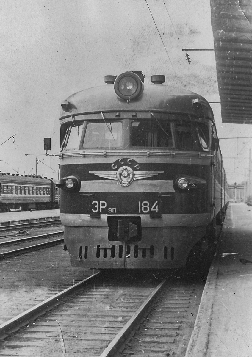 Электропоезд ЭР9П-184 на станции Минск-Пассажирский, город Минск, Белорусская ССР (фото сделано в конце 1970-х годов):