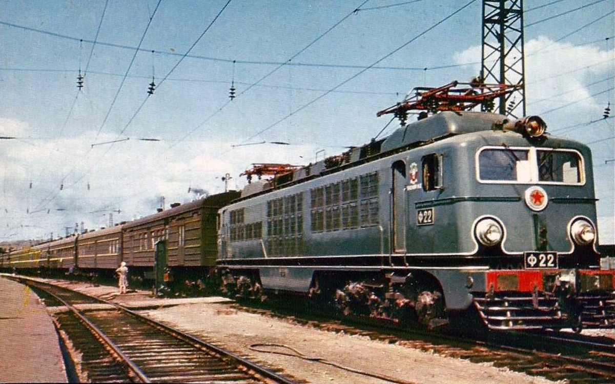 Электровоз Ф 22 с пассажирским поездом на ст. Красноярск. СССР середина 60-х гг.