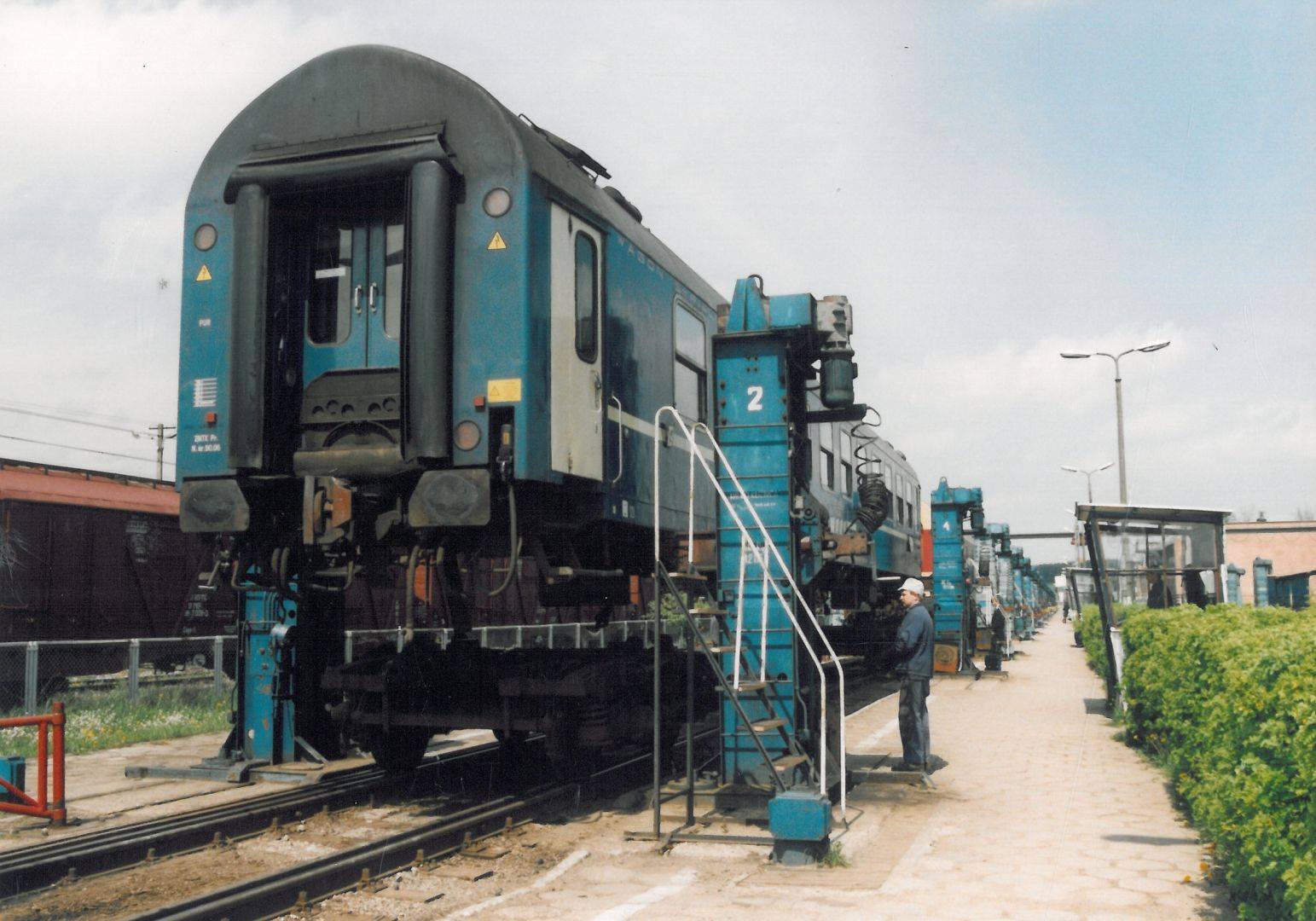 Punkt wymiany wózków wagonowych z normalnotorowych (1435 mm) na szerokotorowe (1520 mm) w 1995 r. Czy to wagony pociągu do Sankt Petersburga?