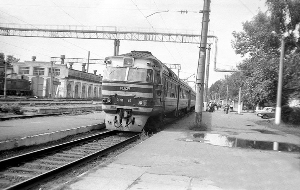 Дизель-поезд ДР1П-117 на станции Осиповичи-1, Могилёвская область (фото сделано в августе 1994 года):