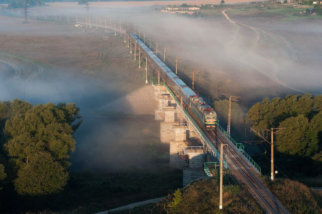 Пассажирский поезд Санкт-Петербург–Воронеж следует по линии Узуново–Рыбное. Перегон Разъезд 12 км–Разъезд 24 км.