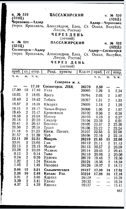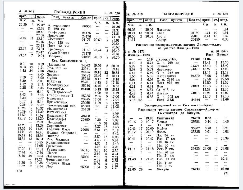 Из книги расписаний поездов Донецкой ЖД 1988 года, ранее упоминаемый в этой теме 519/520 Череповец - Адлер