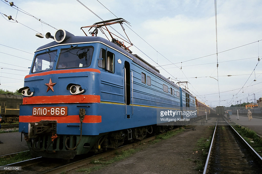 Russia, Siberia, Irkutsk train station, Electric locomotive VL10-866 (January 01, 1992).