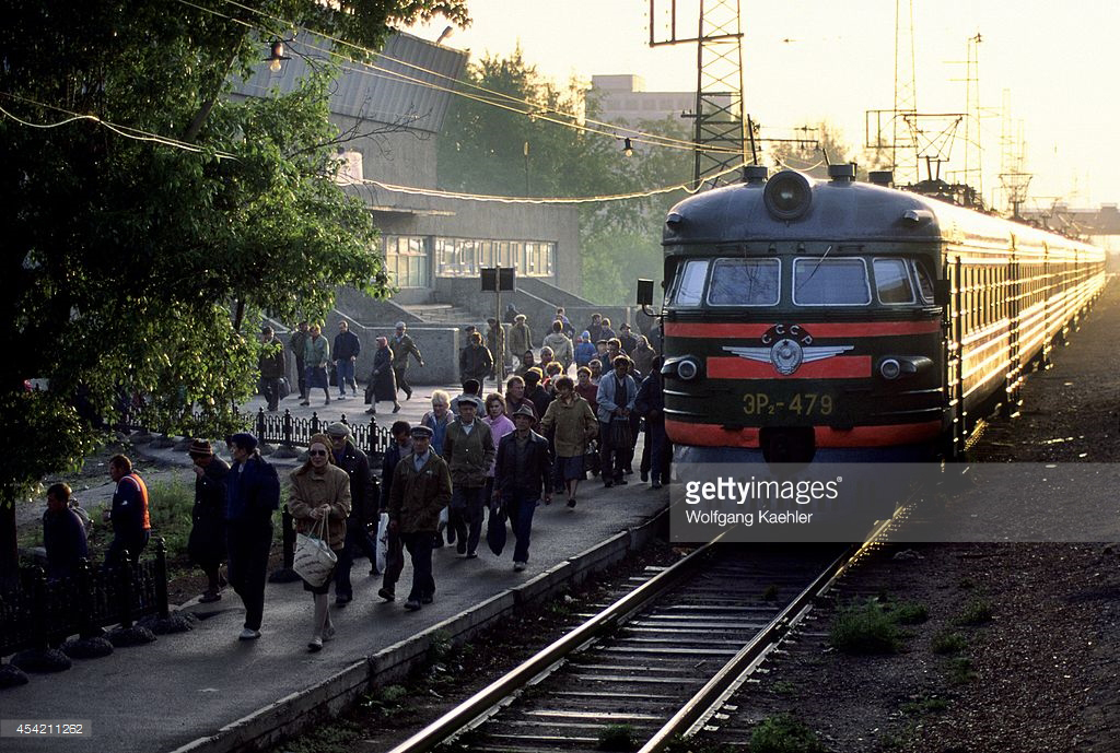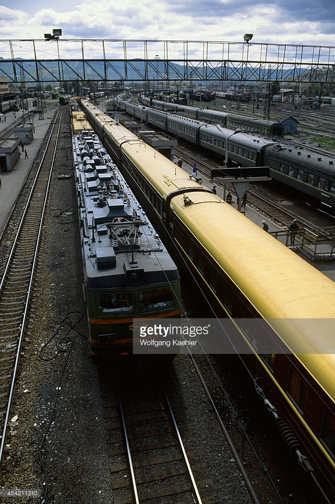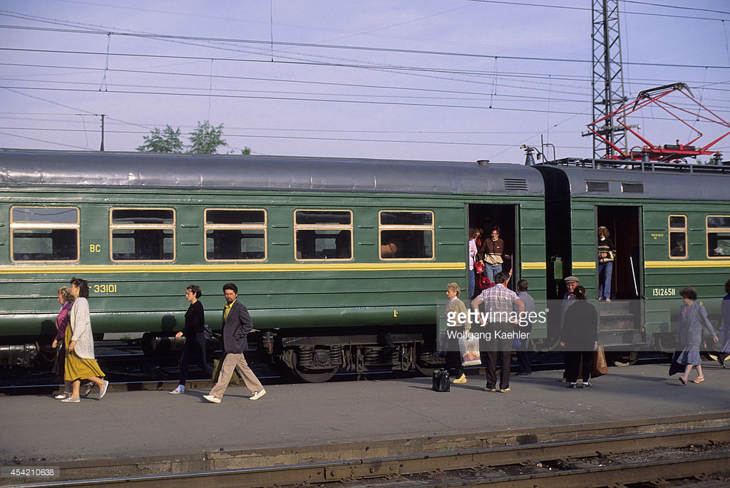 Russia, Siberia, Irkutsk train station with Commuter train (1 Januar 1992).