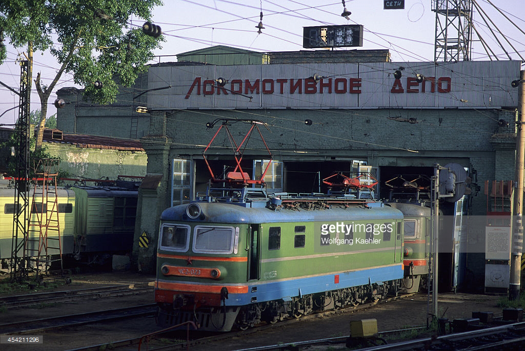 Электровоз ЧС2-023 в локомотивном депо Новосибирск, Новосибирская область (фото сделано весной-осенью 1992 года):