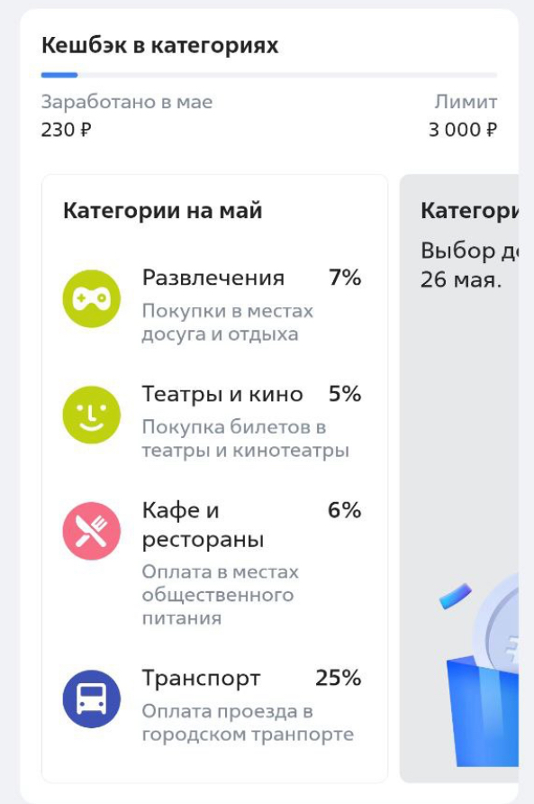 За жд-билеты не начисляется (по крайней мере, мне не начислено), вроде как только за оплату общественного транспорта - весьма удачно оплатил супруге годовой проездной по карте Тройка - до подорожания и с начислением кэшбэка (только он вроде 15%).v_gildenberg: Задумался - а не проще ли было оплатить с дебетовой карты ж.д.билеты и потом получить 25% бонусами?! Отмел мысль. Вот-первых, не уверен насчет кода MCC сервиса «туту ру». Во-вторых мне наконец пришли баллы 25% за апрель (сказалось мое нытье в чате ГПБ) и я щедро в начале мая тратил по карте в супермаркетах, такси и оплате билетов (проездной пополнил за декаду ). Должно придти максимальное число баллов -5000, которые я потом планирую конвертировать в сертификат озон. 5000 рублей . Хотя 19 000 рублей прям должны идеально вписаться в 25% баллов