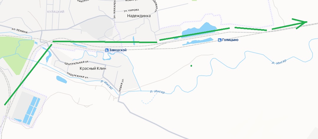 Да нет Владимир, посмотрите карту, он перед самой Рузаевкой, при движении от Инзы, уходит направо на Саранск и как бы краем захватывает это Голицино, по-этому и сегодня оно опять присутствует в фактическом. То есть этот соединительный путь, это Голицино.