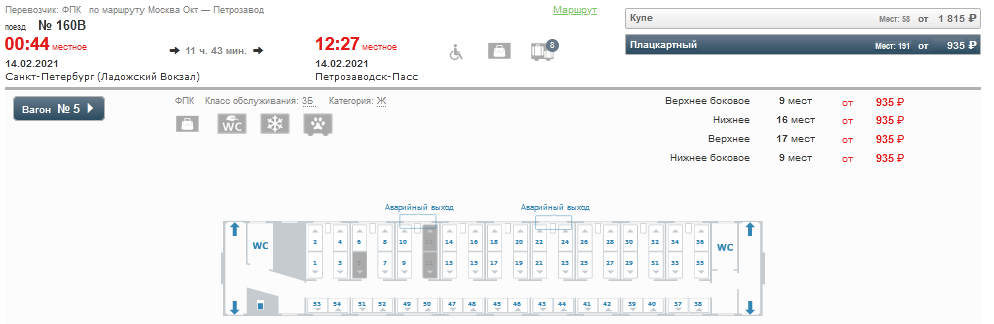 ), а С.Петербург - Казань участвует в акции "скидка в плацкарт на фирменные поезда")Только пассажиры с Петрозаводска почему-то предпочитают более дорогую Арктику, чем экскурсию с обеда по КарелииМурзюша: Оба эти поезда в исключения, т.к.участвуют в других акциях. На 160/159 и так перманентная скидка 35% на все места (спасибо губернатору Карелии)