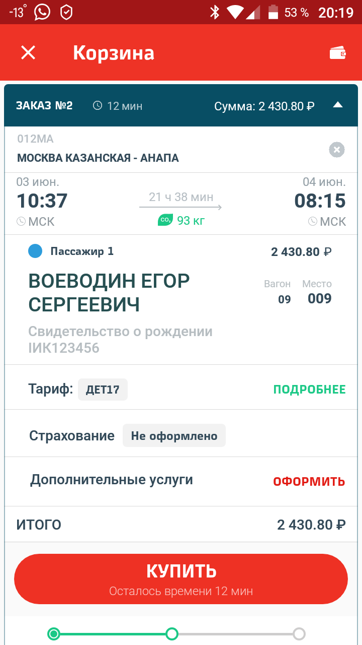 Июнь. Мо-Анапа. 012-й. Ввела данные пассажира, затем "добавить". Появилась полная стоимость.кассир: Дата? Станции? Поезд?