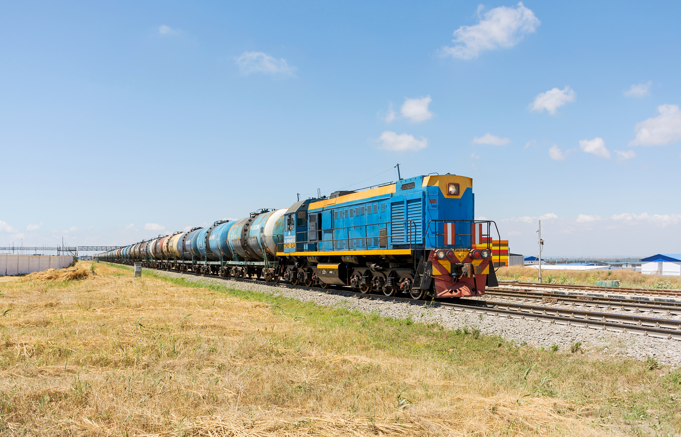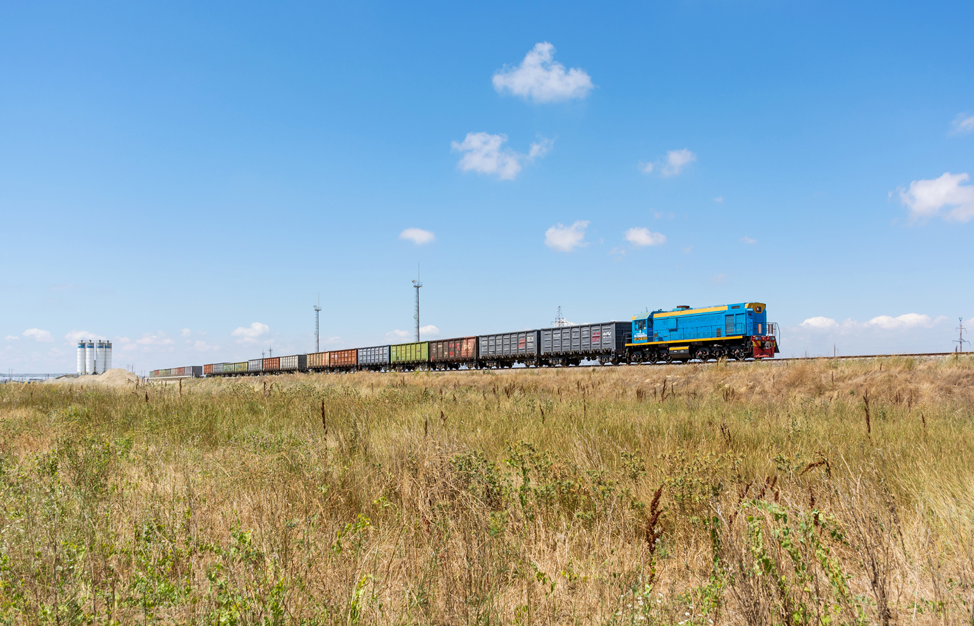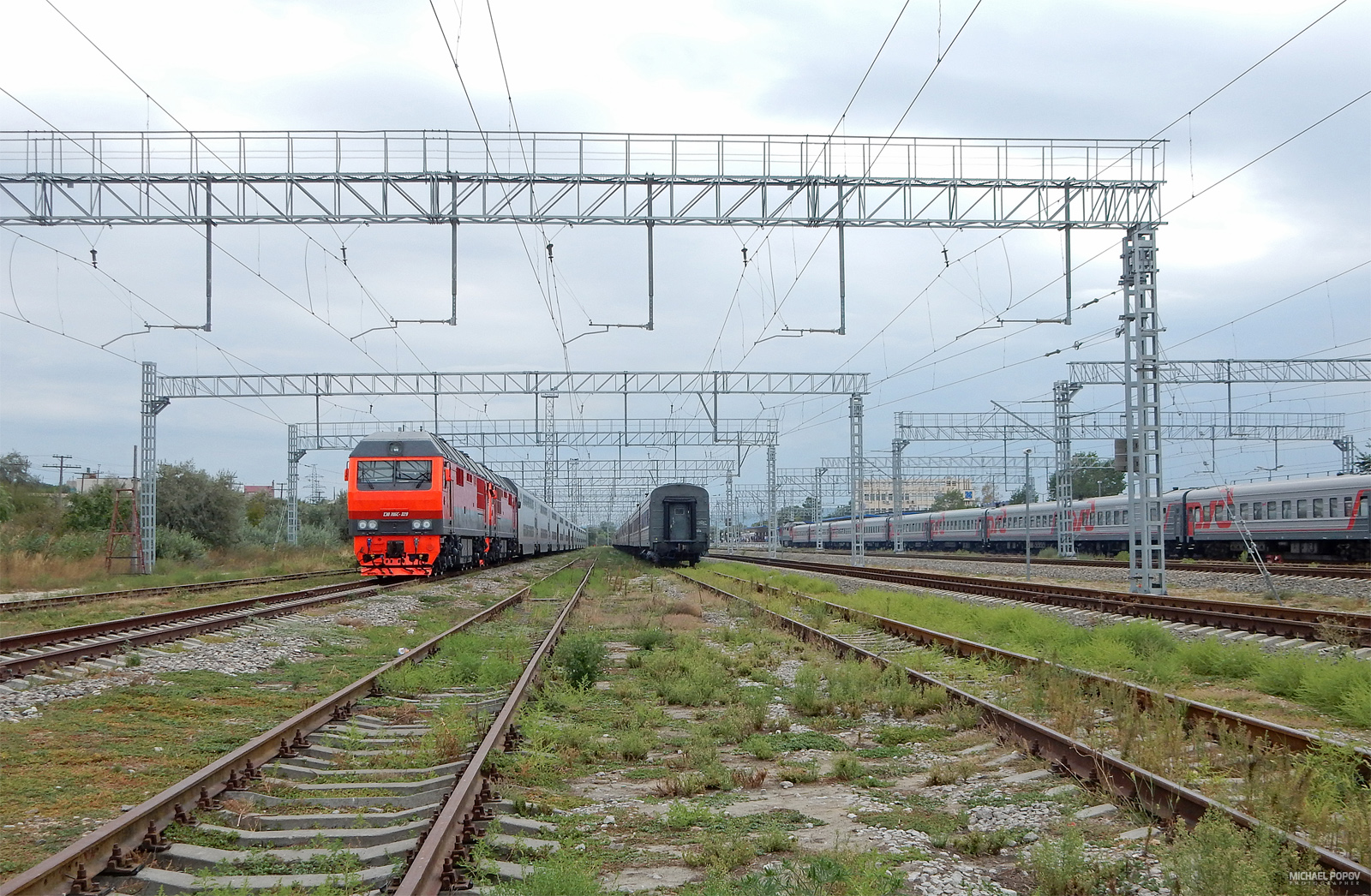 Тепловозы ТЭП70БС в серо-красно-оранжевой ливрее. Станция Анапа и перегон Анапа-Гостагаевская. Июль 2019 г.