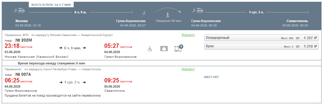 2. Москва- Севастополь не подходит (прибытие после обеда), значит только СПБ-Севастополь с посадкой в Рязани (т.к. В Москве нет остановок)?