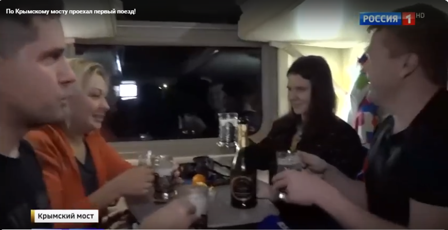 Кстати, вот кадр из телерепортажа о первом поезде ч/з Крымский мост с теми самыми софитиками.