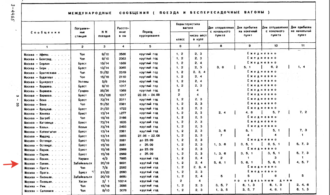 А вот китайский №3\4 Пекин-Москва, действительно, всегда ходил раз в неделю. Прибывал в МСК в понедельник, отправлялся во вторник.