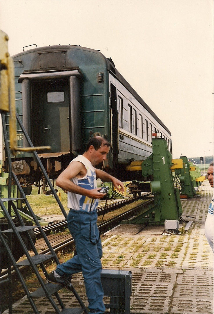 Il y a plus de 20ans, en 1987 j'ai fait le voyage Vilnius - Varsovie. Lors du passage de la frontière, heureusement de jour, nous avons assisté au changement d'écartement, j'avais d'ailleurs posté une photo il y a quelque temps. Pour te répondre les voyageurs restent dans les voitures. Les voitures sont montées sur vérin les boggies voie large sont retirés et remplacés par les boggies à voie normale. Je ne sait pas si maintenant ils pratiquent toujours de la même façon.