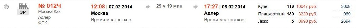 у него же адское прибытие в мскserg:Цена Питер-Москва на 116 поезд за 45 суток - весьма приемлема в размере 1 389 рублей за нижнее место в купе... Надеюсь, понятен ход моей мысли - озвучивать не буду. Прикупил себе местечко на 07 февраля.