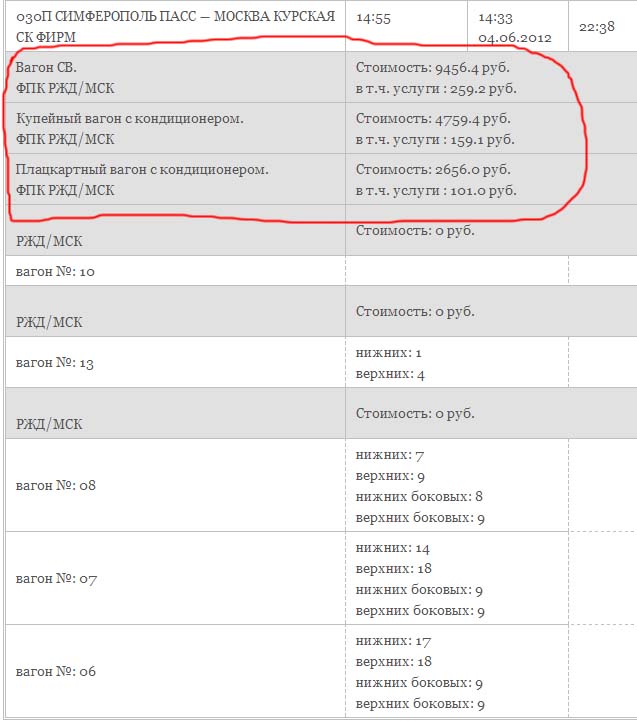 Досле в Справке были только указаны вагоны с "нулевой" ценой, и так всегда на поезда ИЗ Украины!