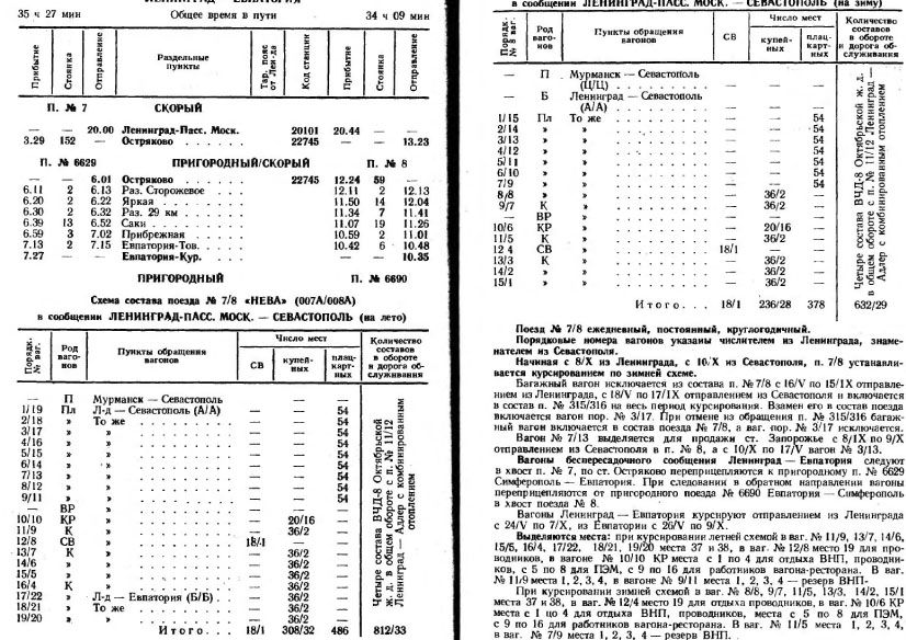 Понятно, что нет ничего идеального, есть схемы и за другие годы, просто не искал. Есть в бумажном виде, вот это точно лениво набирать ::-D: Отмечу только, что в таких решениях именно такая логика и есть: пассажиропоток на юга всегда был неравномерным по времени года (еще вспомнил, как не так давно на зиму отменяли евпаторийский поезд и пускали 3-6 вагонов с сиферопольским, причем от Симфа сначала с элькой, а потом с отдельным паровозом).