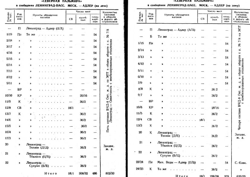 Вот схемы поездов по сезонам (навскидку вытащил, 1987 г.). Немного обрезалось, но всё в общем понятно.