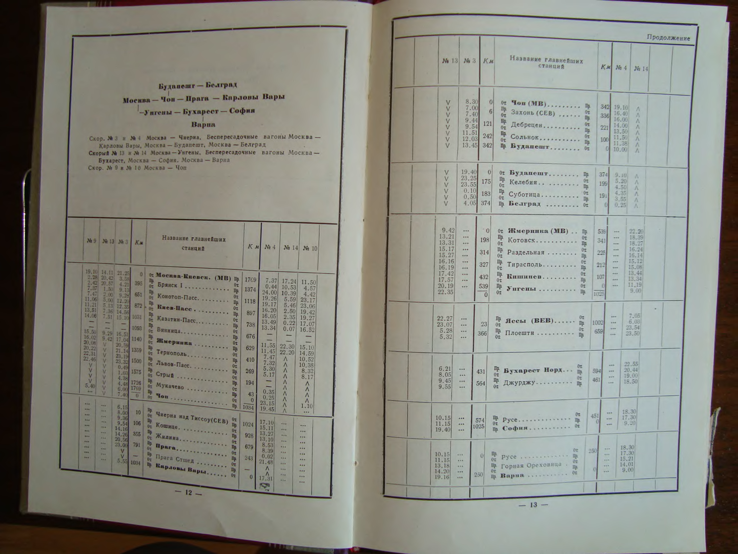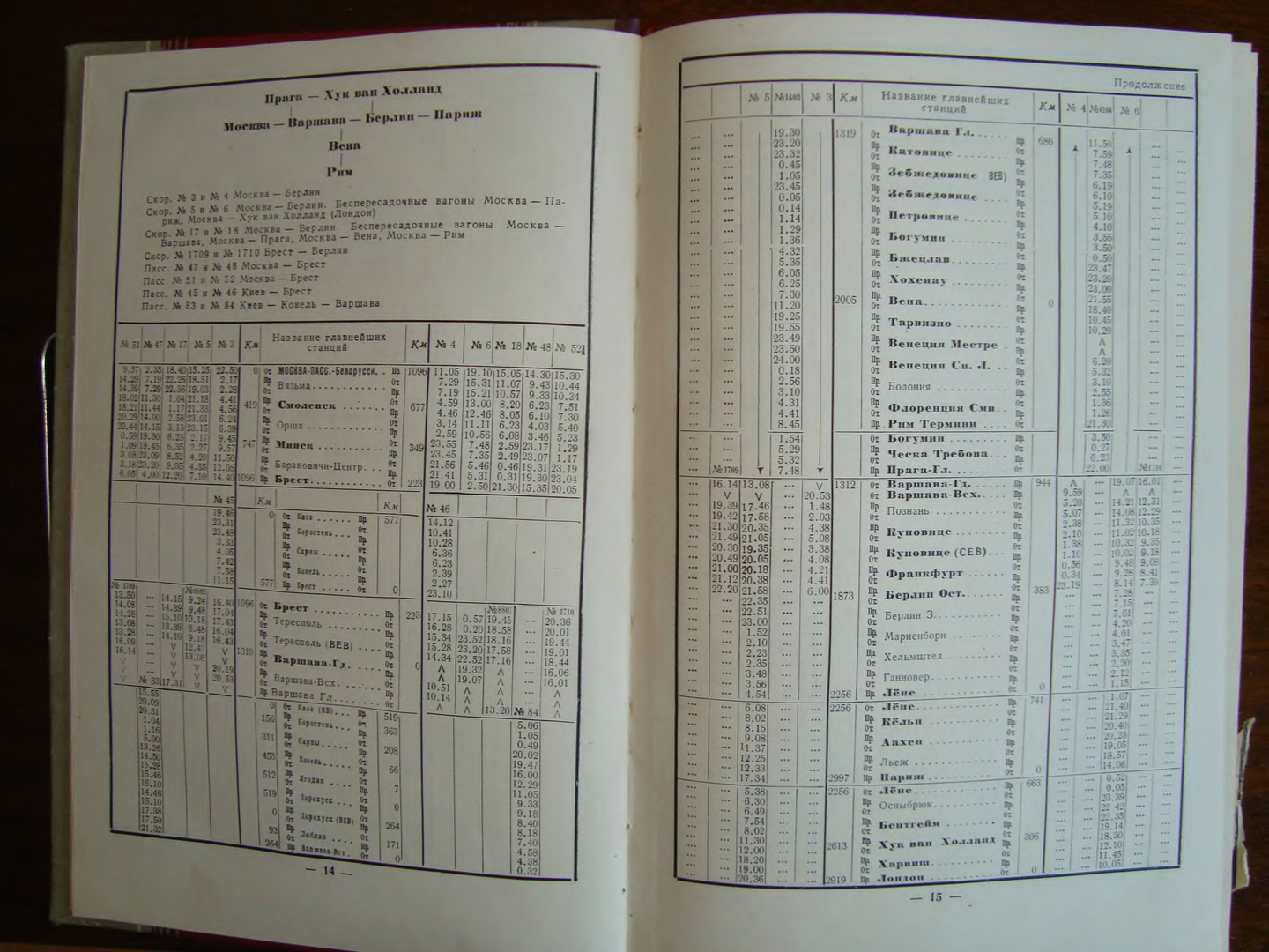 Указатель железнодорожных пассажирских сообщений за лето 1961 года (раздел "Международное пассажирское сообщение"):