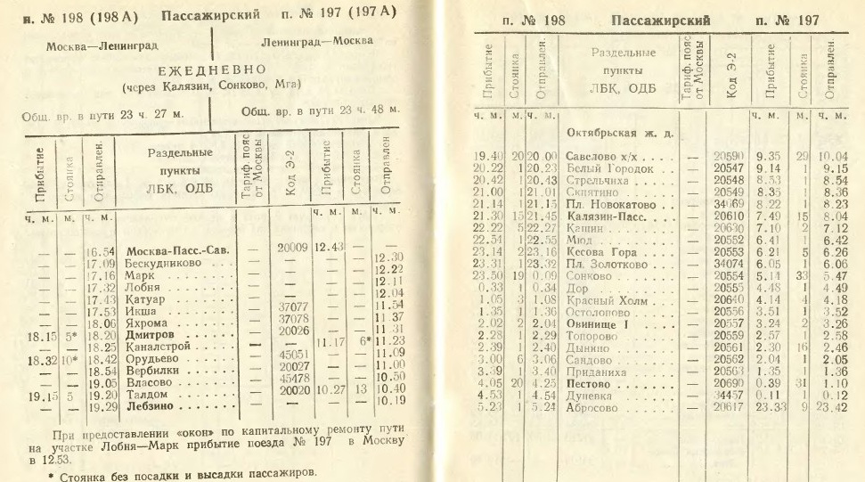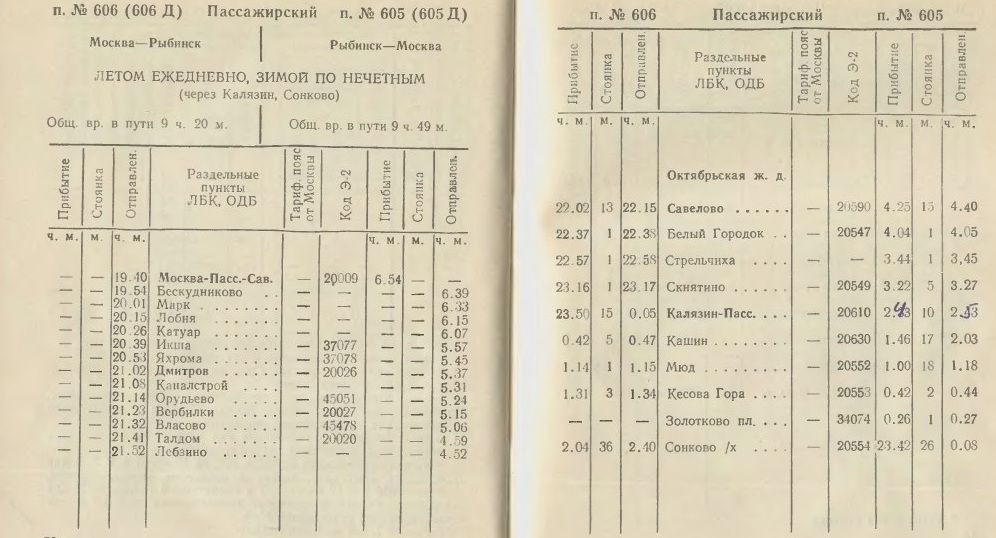 1991 год служебное расписание поезда № 606Д/605Д Москва-Рыбинск
