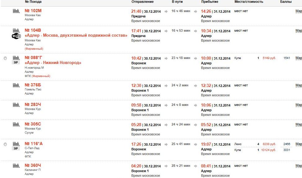 Из восьми поездов отправляющихся из Воронежа в Адлер 30.12.2014 только два идут 17 часов, а остальное большинство около суток, так что про 17 часов можно не вспоминать, 75% поездов с пассажирами идут около суток.