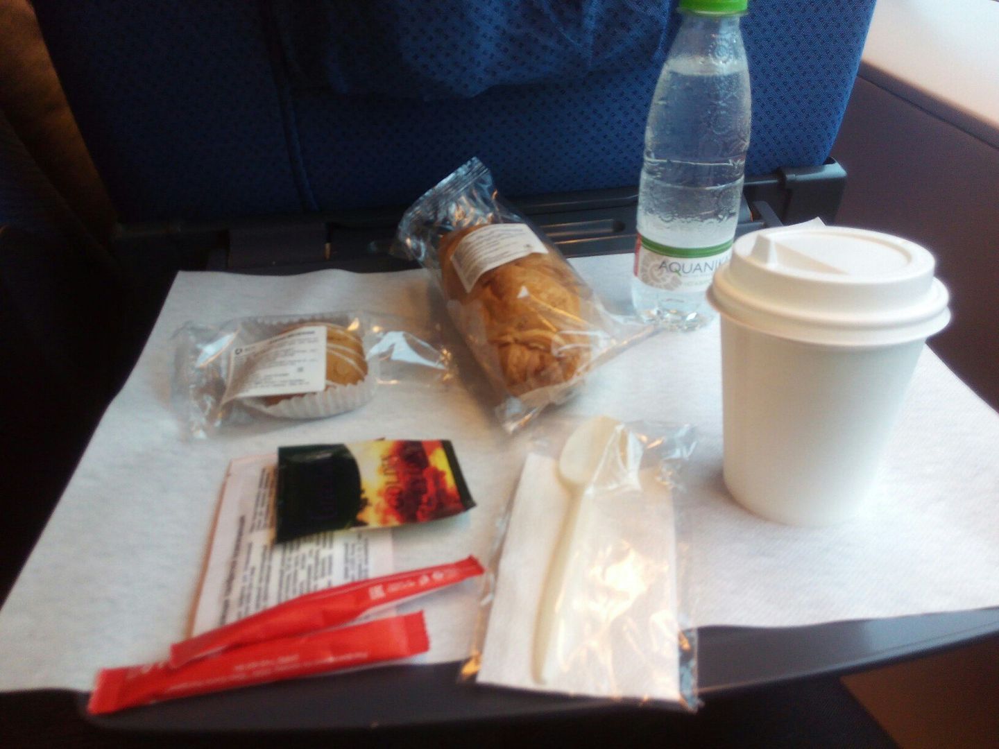 После долгого перерыва вновь проехался в 10м вагоне. Питание испортилось еще больше и можно сказать что уже окончательно. Вместо пирожков теперь вообще круассан с курицей/овощами на выбор. Я взял с курицей. Курицы внутри почти нет ::-D:
