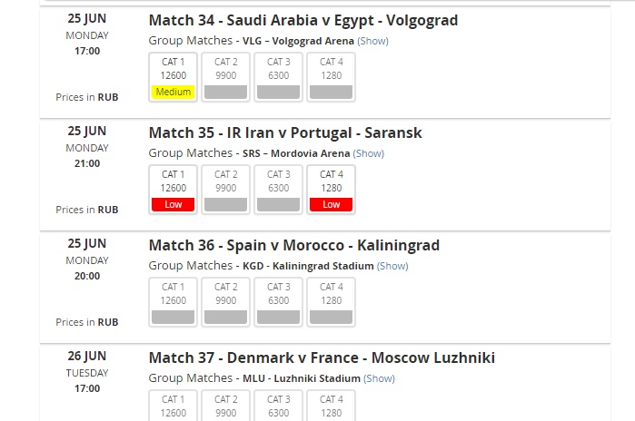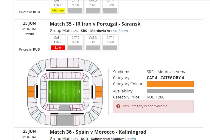 На офф сайте до сих пор висит билет на 4-й категорию в Саранск на матч Португалия vs Иран.