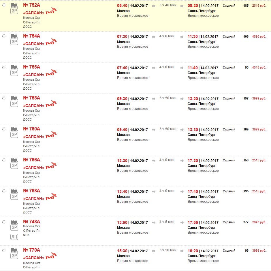 И это на завтра...У меня был билет за 1225р на Сапсан. Я его сдал, ибо по итогу выйдет дороже чем на самолете с учетом питания.