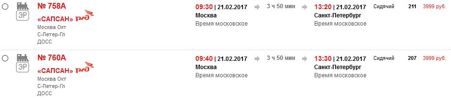 Именно так. Я уже писал об этом выше Скоростной поезд "Сапсан" но воз и ныне тамМинеральные Воды » 20-02-2017, 11:39:Сто пудов 0.0. 3999, это в 2 слишним раза дороже самолёта. Мне вон завтра в Питер к 10 надо, вчера билет посмотрел на 752 и закрыл обратно сайт. В результате когда 752 будет отправляться я только глаза открою, и буду примерно такжепо времени на месте.