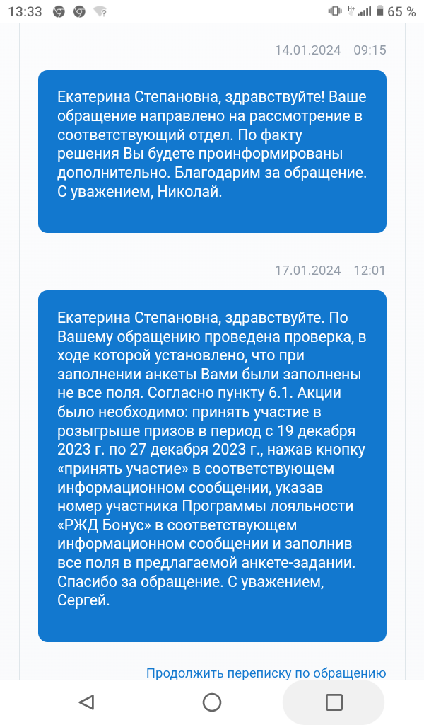 Моей группировке отказали в 500 баллах за новогодний розыгрыш. Пишут, что мы заполнили не всё поля в анкете :=-O: Там действительно было необязательное поле "пожелания к РЖДбонус" или что-то в этом роде - его не заполняли (ну как бы если нет пожеланий, то что там писать). И вот вместо 500 бонусов получили дулю :=-O:
