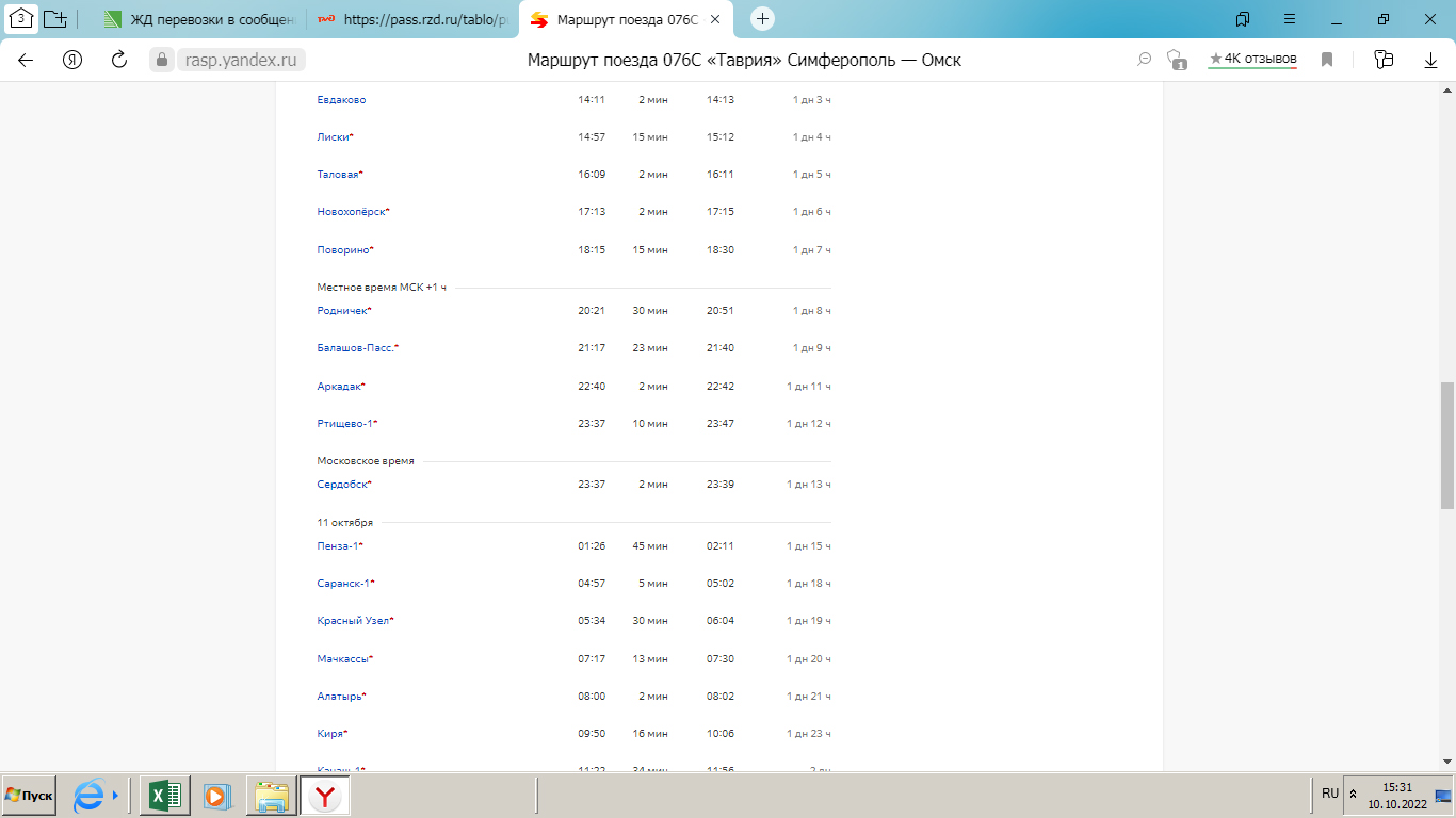 Интересует Симферополь-ОМСК, который выехал с опозданием.