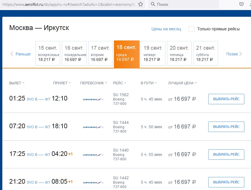 Аэрофлот с багажом? Пруф приведите.mvy:11500Михаил: Иркутск - Москва на 18 сентября в одну сторону 21400