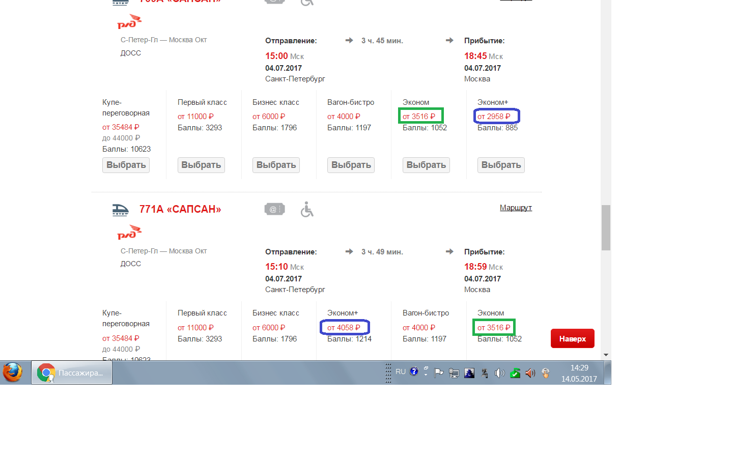 Alexey OZD » 17-05-2017, 10:30:Сергей, а Вы в курсе, что на "Сапсан" - это, вообще-то, цена на инвалидные места? :;-):