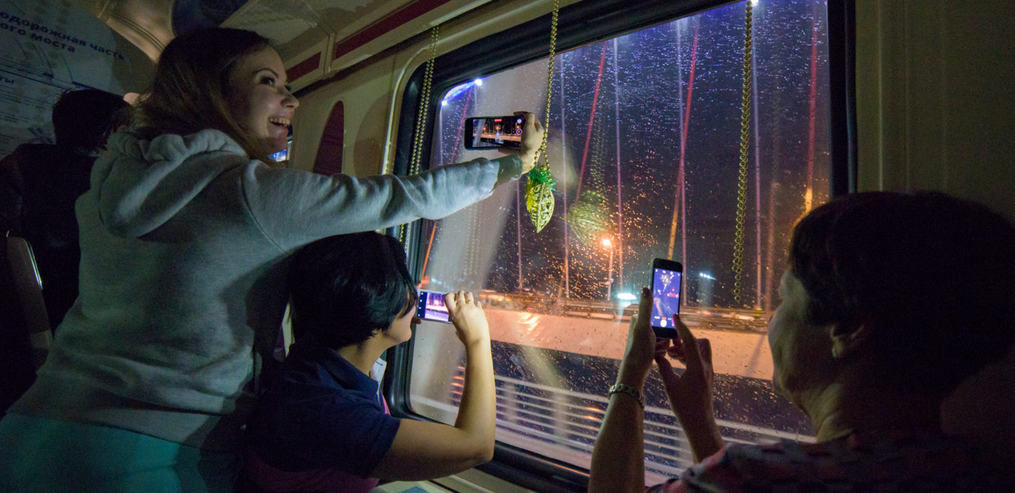 Простите за мой французский, но это чушь собачья. Во время проезда по КМ, согласно требований правил Транспортной безопасности запрещается фото и видеосъёмка, передвижение из вагона в вагон, нахождение в тамбурах и туалетных комнатах. Всё. В РА2 еще окна закрывали летом сотрудники ТБ, но сразу после моста они же их и открыли.Максим П.: Они цари те еще. Нельзя в окно смотреть в коридоре, когда проезжаешь Крымский мост, понимаешь ли.