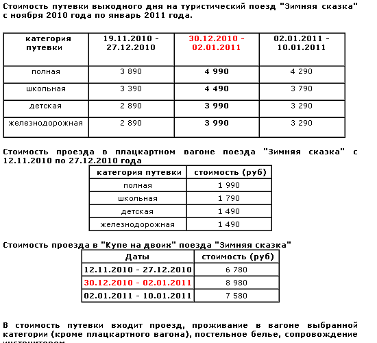 > Змой 2010/11 года у одной из турфирм размер доплаты с клиентов за дополнительное место в купе составлял 16'379 рублей (туда+обратно)