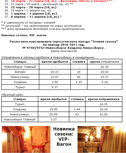 Думаю, неплохо было бы выкладывать на этом сайте информацию о планируемых туристических поездах с предупреждением, что билеты на них в кассах РЖД не продаются.