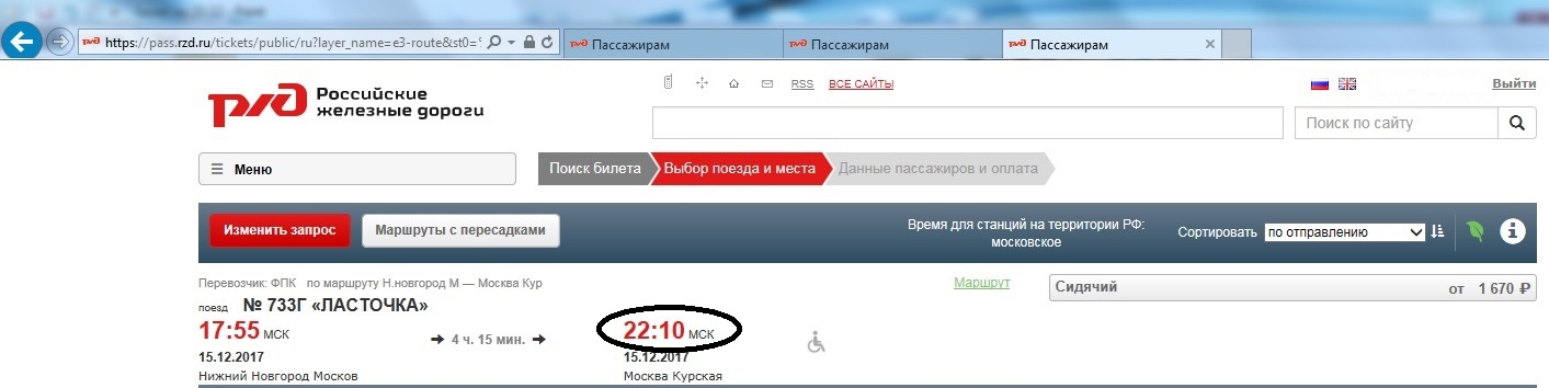 А согласно, информации с сайта РЖД, поезд прибудет в 22:10 -