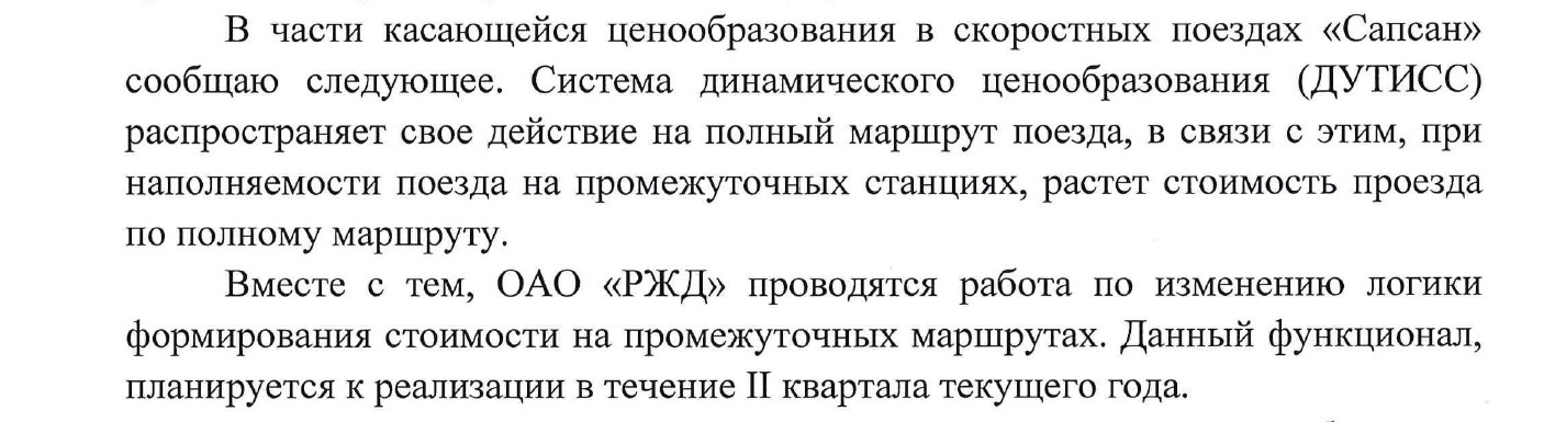 Таким образом, цена на Сапсан на участок Москва - Нижний Новгород зависит от заполняемости Сапсана на участке Питер-Москва... Радует, что обещают подправить этот казус...