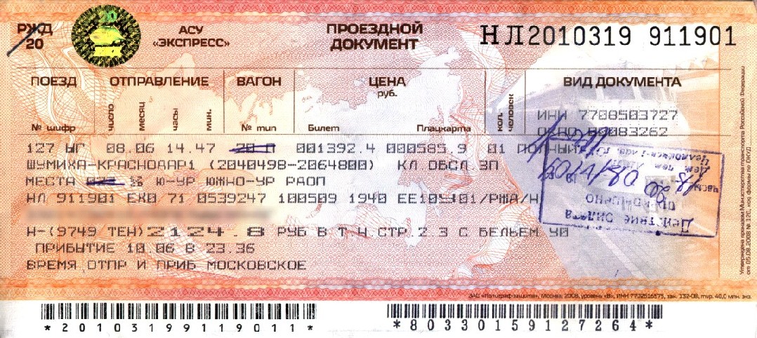 2) проездной документ не использован частично на каком-либо участке пути следования;