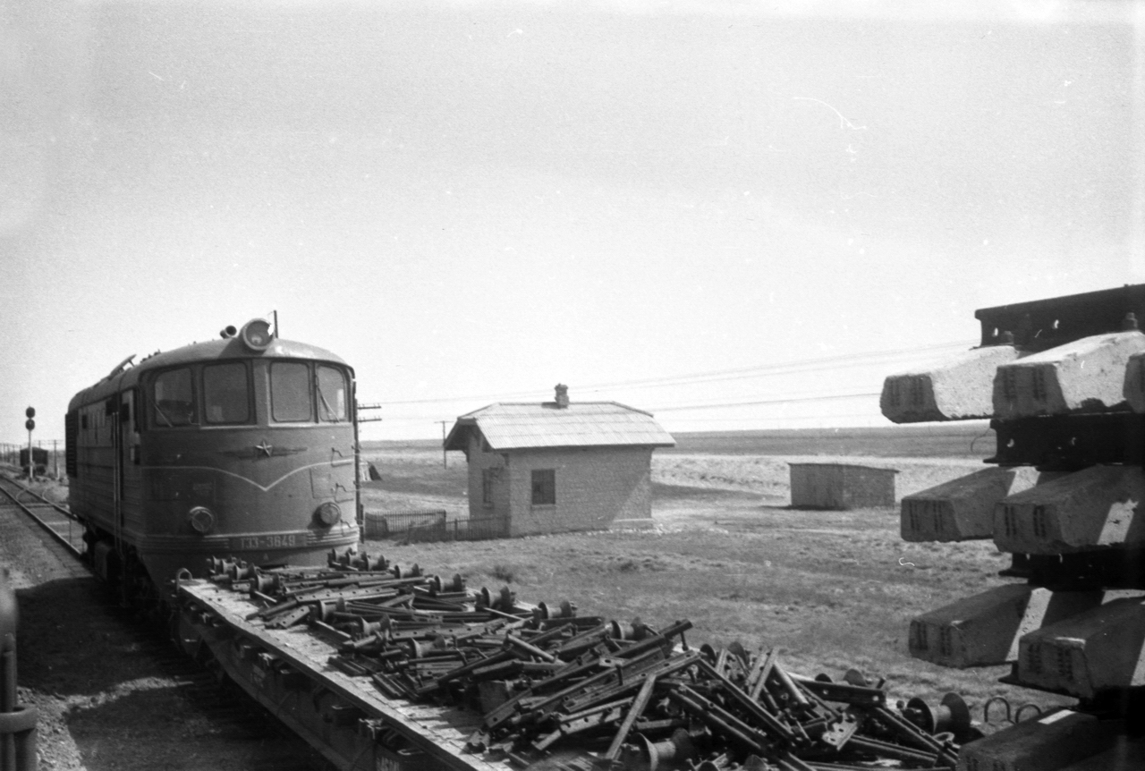 Тепловоз ТЭ3-3649 на станции Верхний Баскунчак, Астраханская область (1967-й год):