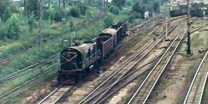 А это что за вагон?.. По-видимому, пригородный - но что за окно справа от дверей?.. (к слову, поезд идет СЛЕВА направо).