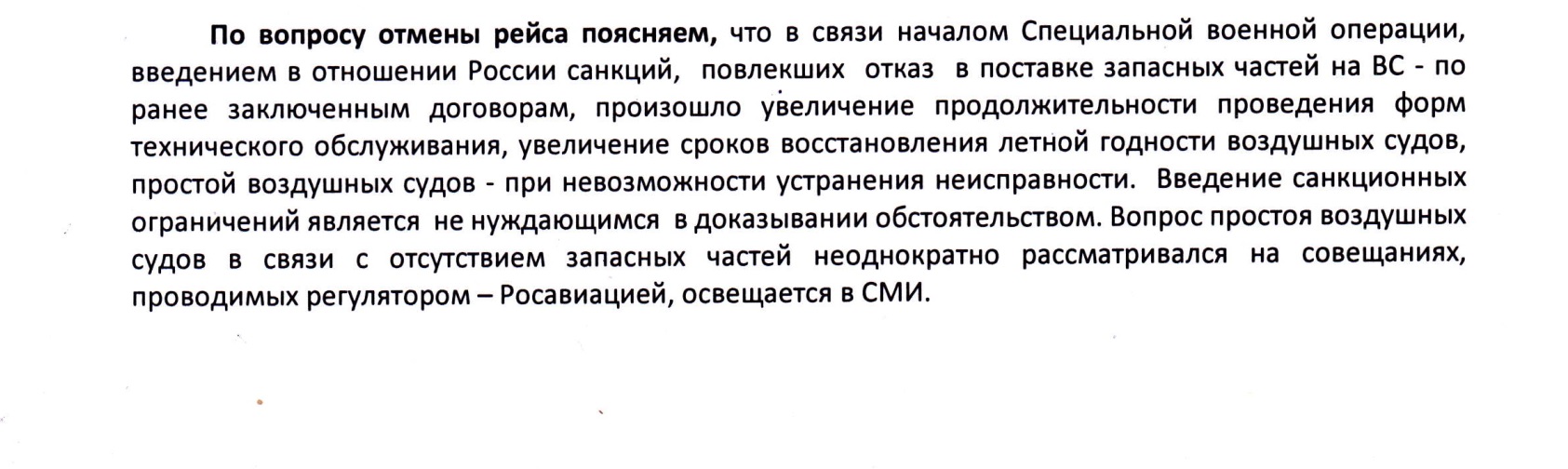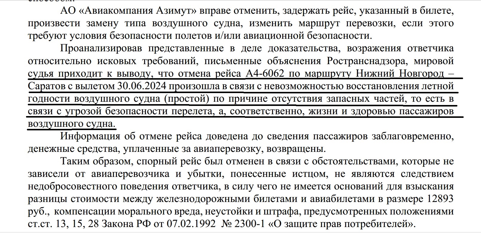 Получается, что если авиакомпания не желает заботиться о приобретении необходимых для полёта запчастей, то такое её поведение судья считает вполне добросовестным.